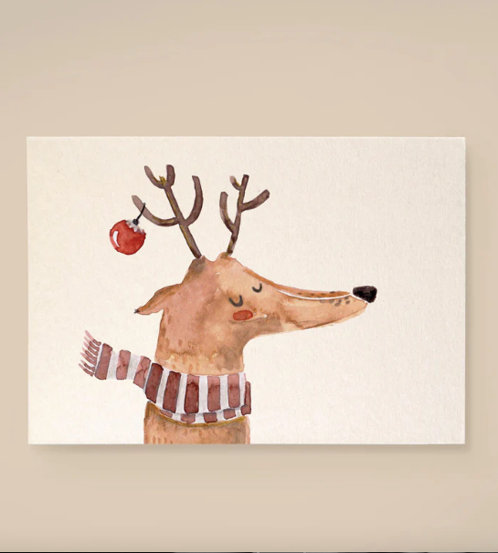 Die Karte mit dem illustriertem Rentier aus hochwertiger, stabiler Holzschliffpappe mit wunderschön strukturierter und leicht cremefarbener Optik ist die perfekte Karte zu Weihnachten.