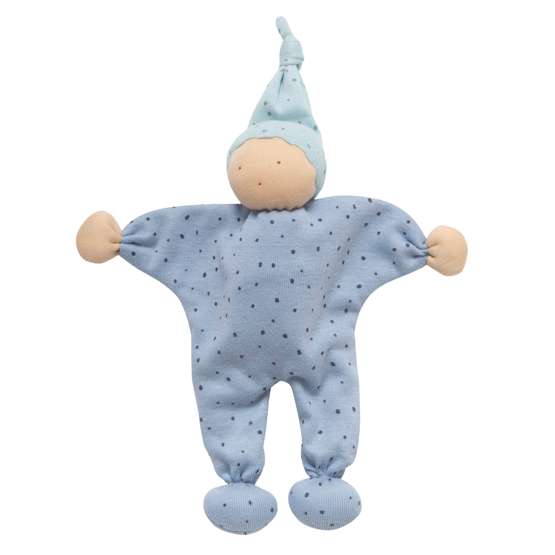 Zum Kuscheln, Liebhaben und Spielen: Ein Püppchen, das so gestaltet ist, dass selbst die kleinste Babyhand eine Stelle zum Greifen und Festhalten findet. Aus hochwertiger ägyptischer Bio-Baumwolle gefertigt. Wunderschön als Geschenk zur Geburt oder einfach so.